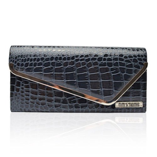 Mimi & Thomas offer Navy Crocodile Effect Patent Leather Metal Trim Clutch Bag. This awesome product currently limited units, you can buy it now for £24.95, You save -